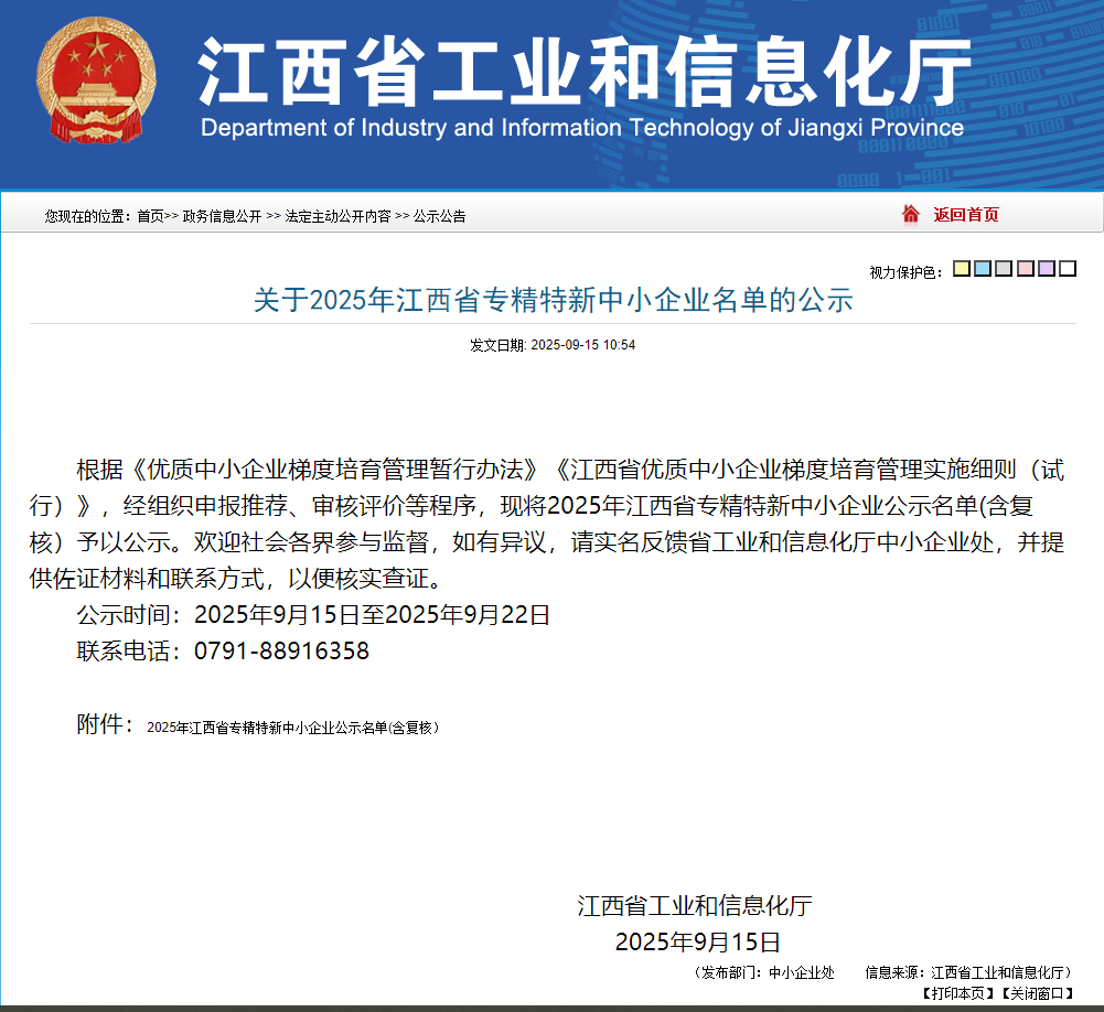 近日,江西省工业和信息化厅正式公布“2025年专精特新中小企业名单”,江西九二盐业有限责任公司(下称“九二盐业”)凭借在专业化、精细化、特色化领域的突出表现成功入选,荣获省级“专精特新中小企业”称号。这一荣誉不仅是对企业核心竞争力的权威认可,更标志着九二盐业作为上市公司雪天盐业集团核心生产企业,已在区域盐化产业专业化布局、精细化管理领域树立了新标杆,为雪天盐业集团完善盐化产业链布局、巩固行业竞争力提供了坚实支撑。